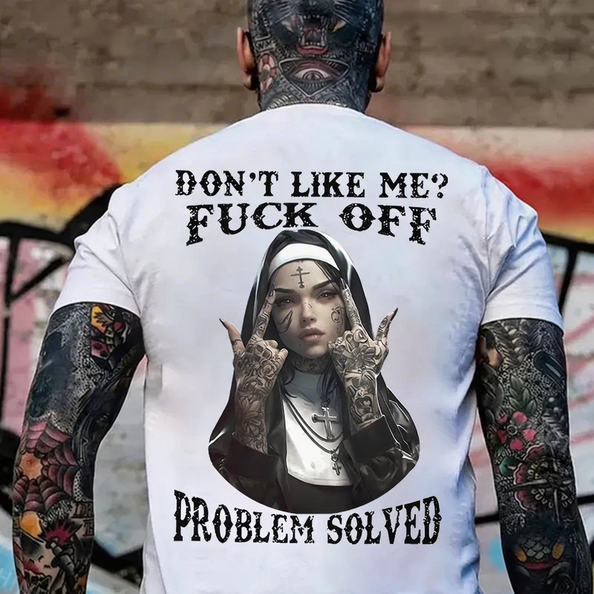 DON'T LIKE ME FUCK OFF Defiant Nun Print Men's T-Shirt